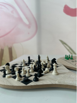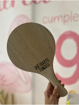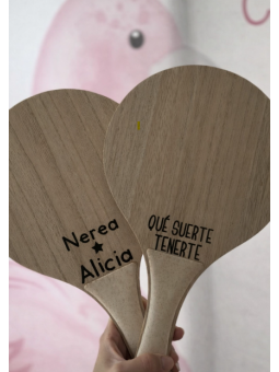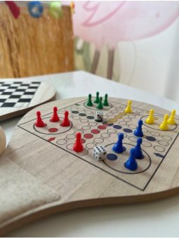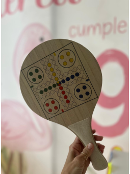 Dos palas personalizadas: una con tablero de parchís y otra con tablero de ajedrez.