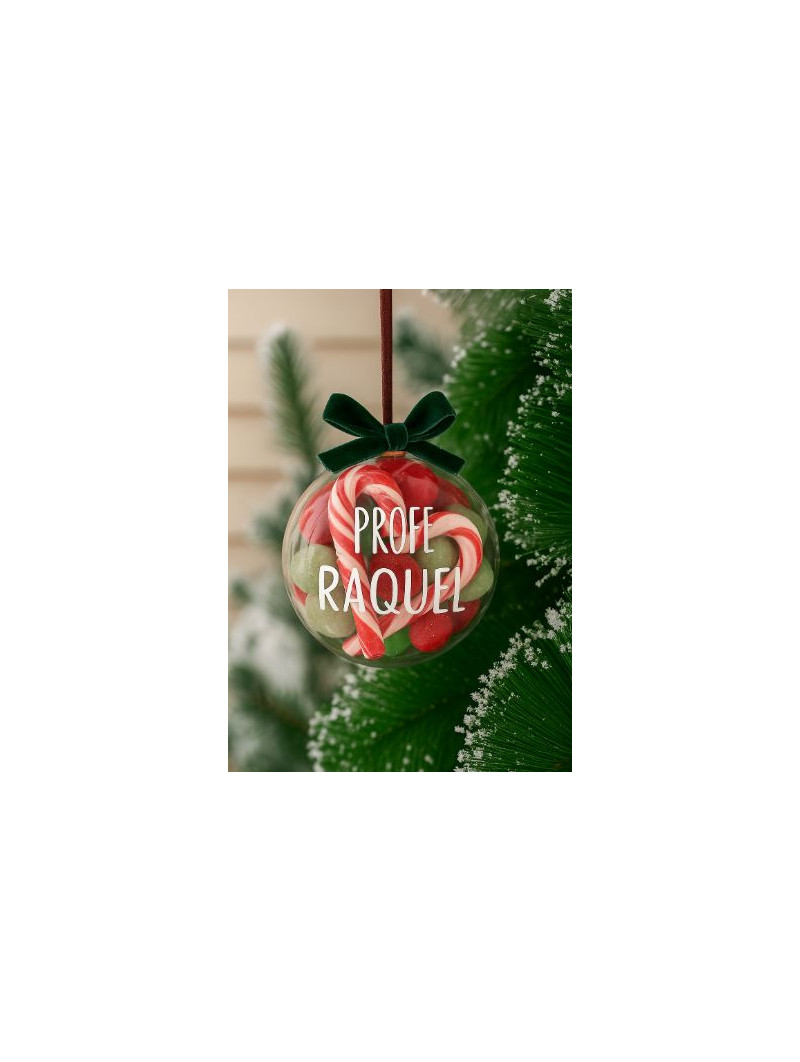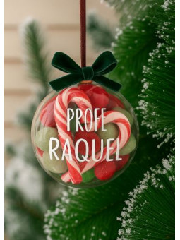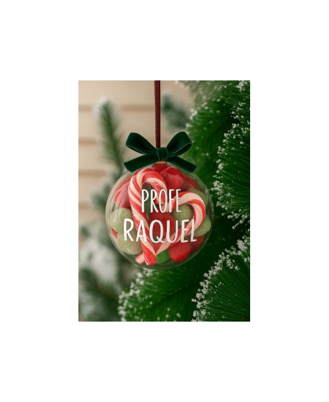 Esfera de Navidad personalizada con el nombre o palabra que desees. Llenita de golosinas navideñas. El regalo perfecto para los más golosos.