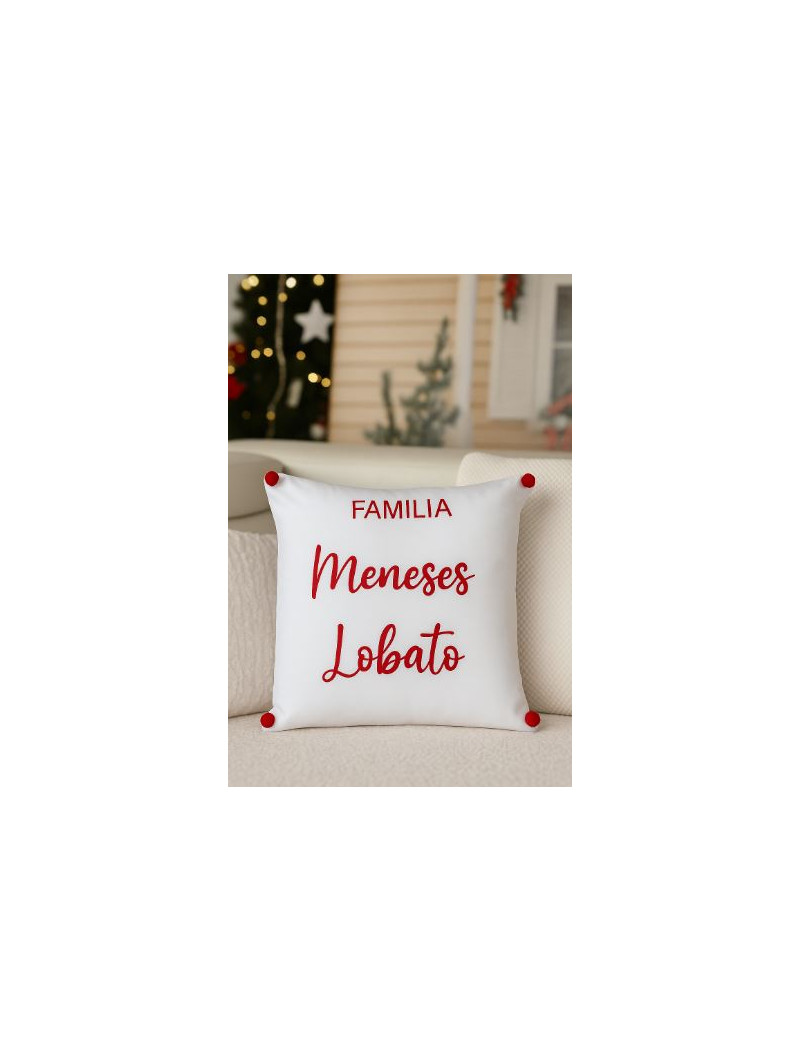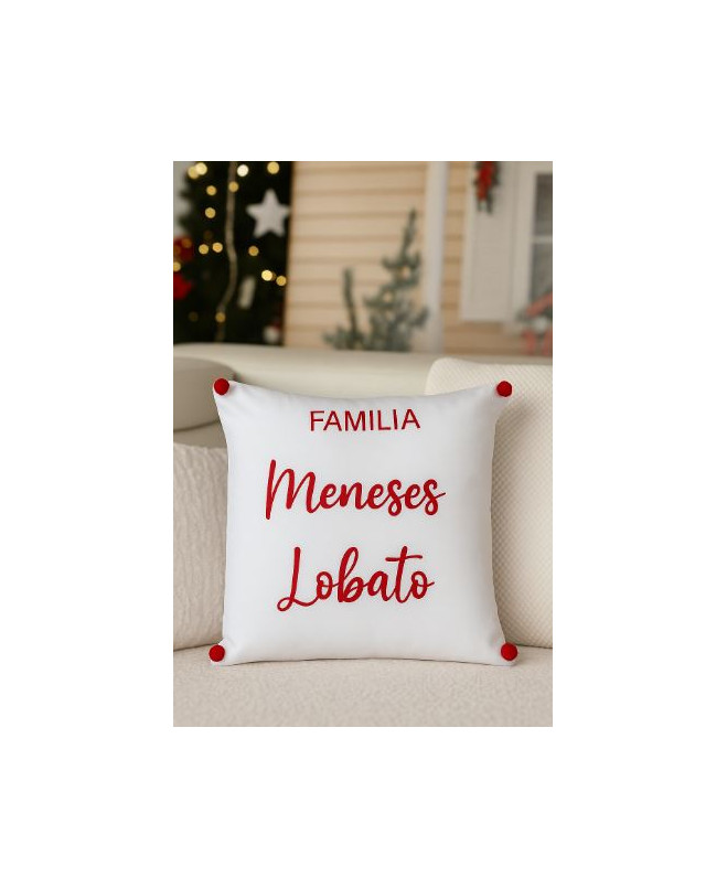 Preciosa funda para cojín en blanco con texto en terciopelo, ideal para decorar tu sofá y ver solo en casa con un mood muyyy navideño ;)